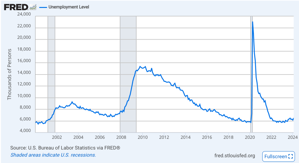 EUA: Número de desempregados, em milhares. Fonte: FED St Louis.